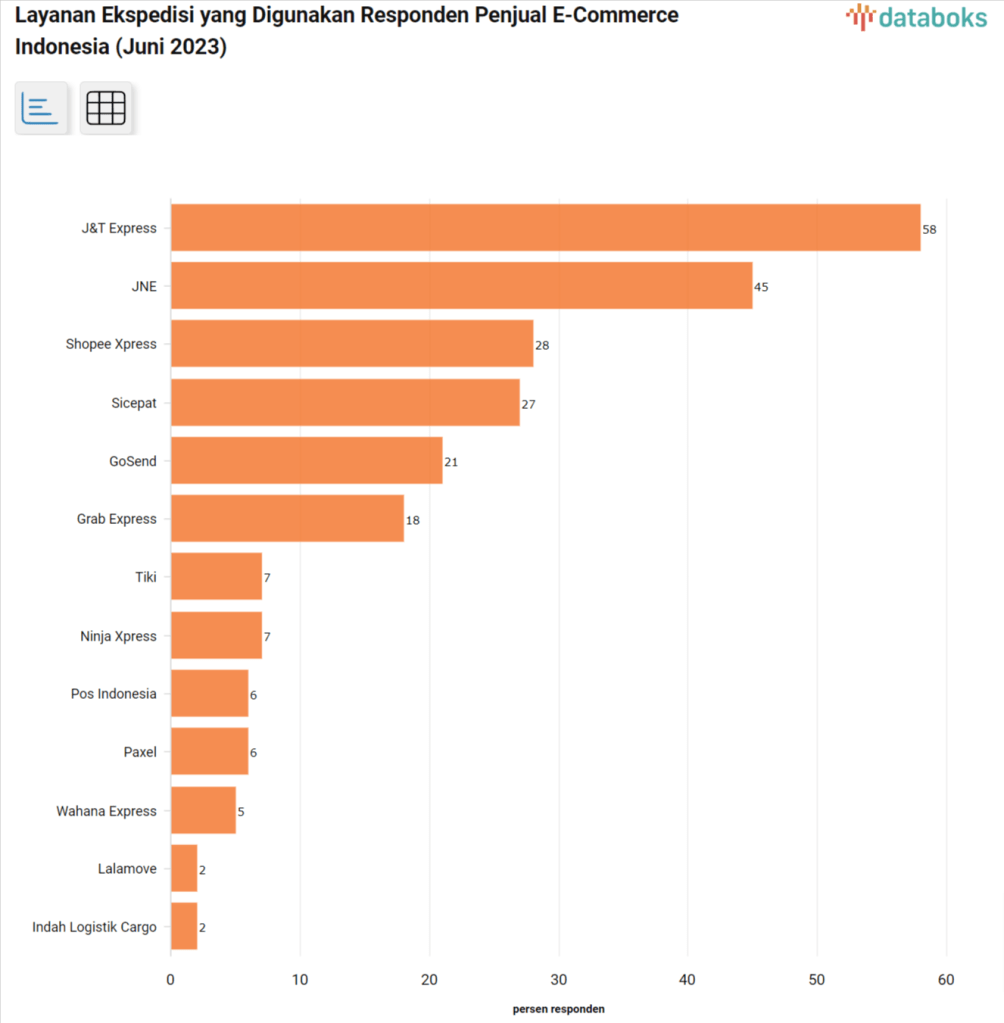 Berdasarkan data yang tersedia di databoks, J&T menjadi pilihan utama penjual online untuk layanan pengiriman modern ini.
