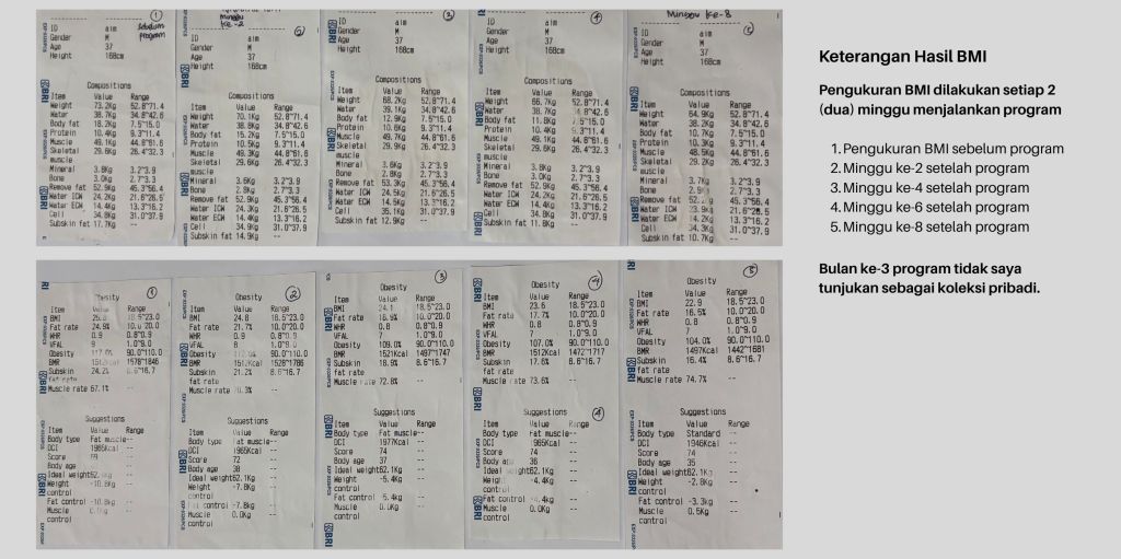 Hasil Tes BMI selama 2 bulan setiap 2 minggu program latihan: